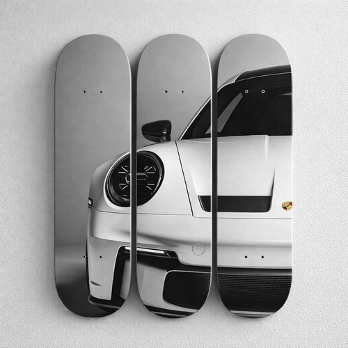 White 911 Sports Car 3-Piece Skateboard Wall Art – Modern Luxury Decor